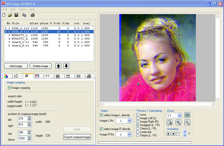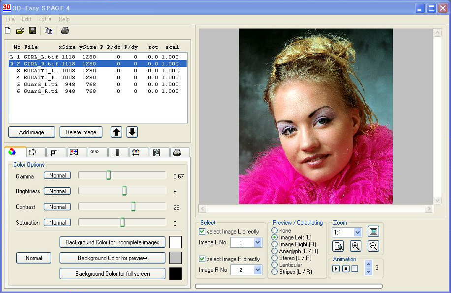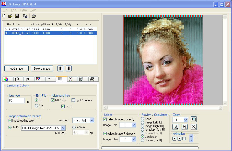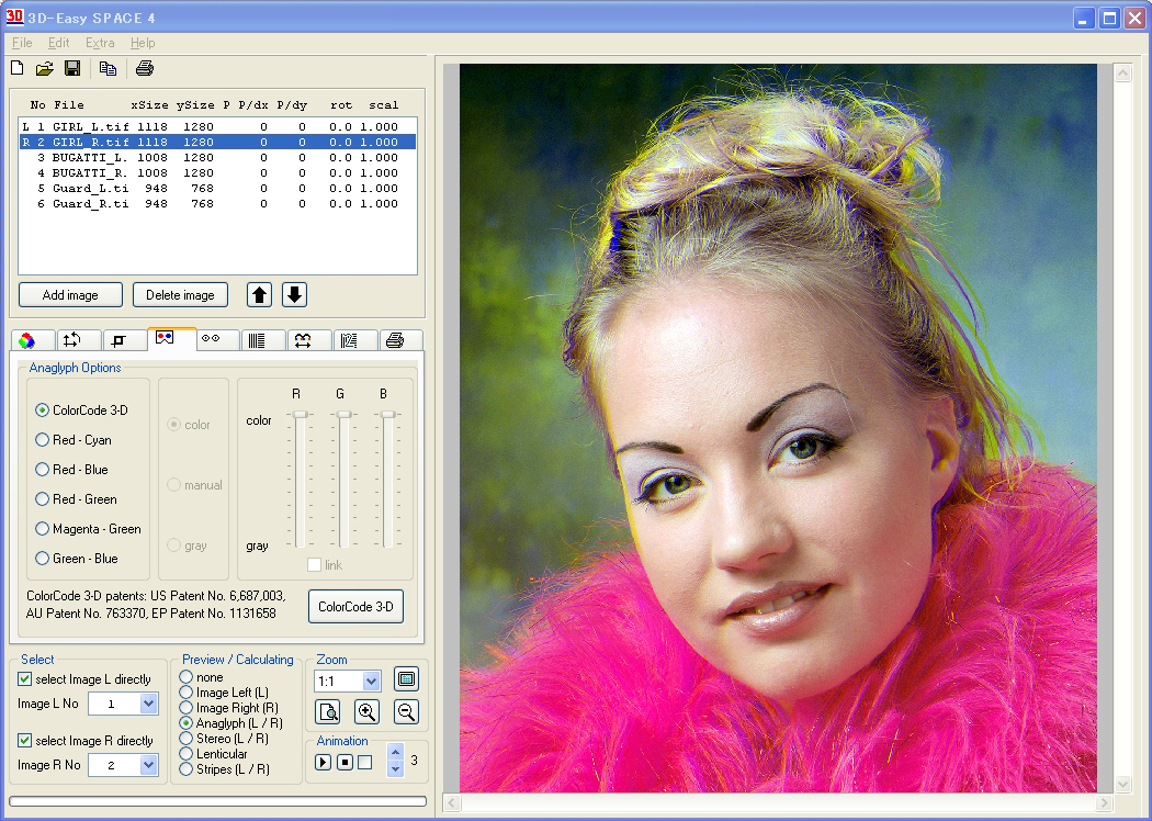 「3D-Easy Space 5」は、ドイツ・New Illusion社によって開発されたアナグリフ制作ならびにレンチキュラー印刷のためのWindows用ステレオ3D画像変換ソフトとです。