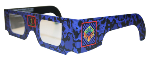 本取組みで行う地図の立体視では,クロマディプス技術を用いた3Dメガネを用いた.これは,専用のクロマディプスメガネをかけて見ることにより、対象の色相の変化を奥行きの変化としてとらえることを可能にした立体視技術であり,具体的には,背景が黒の場合,青系の部分はより奥に,赤系の部分は手前に飛び出して立体的に見えるものである.