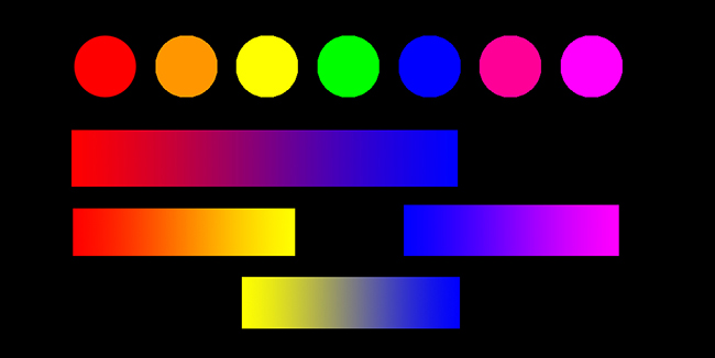 ⑤ 標高を高いほうを「赤」,低いほうを「緑」「青」とし,等高段彩を行う(自動グラデーション機能を援用)