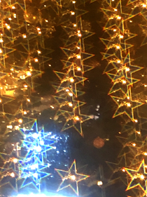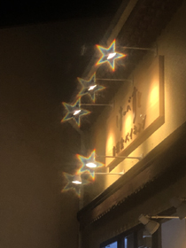 [Note] 上図のレンズ部分に描かれたホログラムパターンはイメージです。実際のレンズは半透明のフィルムでパターン印刷されているわけではありません。ホログラムパターンは点光源を見て初めてその周りに発生します。 |
