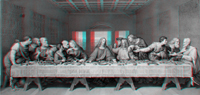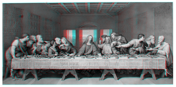 私どもの友人でレオナルド・ダ・ビンチ研究家の片桐頼継さんが、昨年の秋、癌で亡くなられました。49歳の若さでした。実践女子大学で美術史を教えられていましたが3年前にイタリアのレオナルド・ダ・ビンチ博物館への留学が決まり、その時以来、立体視画像に強い興味をもたれていました。イタリアに出発する際には最新式の3Dパソコンと小型のステレオカメラ2台、それにステレオ撮影用に改造したドイツ製のスライド式雲台を装備し、まるで少年のようにわくわくとした面持ちででかけてゆかれたようです。その片桐さんが病に倒れたのはそれから約1年後、イタリアから帰国して間もなくでした。そして、あっという間に還らぬ人となってしまいました。ステレオ仲間としてこれからおおいに一緒に楽しもうと思っていた矢先でしたので本当に残念でした。現在、片桐さんの3Dパソコンに残されたステレオ画像を整理させていただいてるところですが、中には非常に興味深い写真や2D/3D変換した画像が見つかりました。レオナルド・ダ・ビンチの2D/3D変換画像もそのひとつで、このままパソコンの中に閉じ込めておくには忍びなく、奥様の希望もあり、片桐さんのお人柄を忍ぶ意味でもここに公開させていただくことになりました。他にもまだまだ興味深いステレオ写真が多数遺されていますので、おって順に紹介させていただく予定となっています。片桐さんには心からご冥福をお祈りいたします。