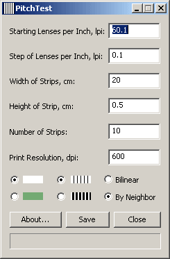 Первоначально ставим шаг теста 0,1 lpi и определяем частоту растра с точностью до десятых долей. Если вы печатаете визитки и календарики, то такой точности вполне достаточно. Если вы печатаете стереокартинку размером с альбомный лист, то нужно напечатать второй тест, но уже с шагом 0,01 lpi, и определить частоту растра с точностью до сотых долей. ВНИМАНИЕ! Тестирование линзового растра для алгоритмов 3D с коррекцией параллакса (3D, Parallax correction) отличается от обычного тестирования. При обычном тестировании мы смотрим на тест с такого же расстояния, с какого будем рассматриваем стерео- или вариооткрытку. При тестировании растра для расчетов с коррекцией параллакса нужно смотреть на тест с очень большого расстояния, в два-три метра. |