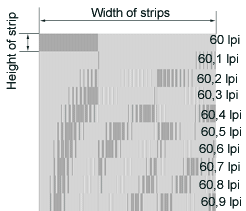 You can choose any value of this parameters. The dialog with default values create ten strips with frenquency 60 lpi, 60.1 lpi, 60.2 lpi, …, 60.9 lpi.