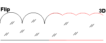 Характеристики растра: a - период растра, t - толщина растра, r - радиус кривизны растра, n - показатель преломления, α - угол обзора Часто растры имеют маркировку 3D Lenses или Flip Lenses. Что это значит. Рабочая область линзы V-образна и ограничивается неким углом - углом обзора α. V-образная рабочая область линзы Это угол, в пределах которого мы видим нормальный стереоэффект и один цикл анимации. Если мы повернем линзу на угол, больший этого угла, мы увидим псевдоскопическое изображение (левое и правое изображение поменялись местами) или следующий цикл анимации для вариокартинок. Этот угол лежит в пределах от 24 до 60 градусов. Угол, больший 60 градусов, сделать нельзя - это ограничение связано с показателем преломления полимерных материалов, из которых сделаны линзы. Если бы могли сделать линзовый растр из хрусталя (показатель преломления около 2), то угловой обзор такого растра мог быть 90 градусов. Если мы положим полосовое изображение под линзу с маленьким углом - 24 градуса - стереоракурсы соберутся в маленький угловой конус и глубина стереоизображения будет довольно большой. Если мы положим ту же самую полосовую картинку под 60-градусный линзовый растр, глубина стереоизображения уменьшится в два раза. Поэтому линзовые растры с угловым обзором 24-30 градусов предназначены в основном для стереоизображений и имеют маркировку 3D Lenses, а линзовые растры с углом 45-60 градусов - для вариоизображений - Flip Lenses. Конечно, это деление условное. Flip-растры можно использовать для создания стерео с большим углом обзора (wide stereo). А 3D-растры для создания вариоизображений с быстрой сменой кадров (quick flip) 3D Lenses и Flip Lenses имеют разные профили. Посмотрите на рисунок снизу. Он вам поможет отличить один тип линзового растра от другого. 3D и Flip линзы |