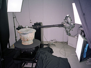 1996年以来、学術・文化財のデジタルアーカイブとして、AutoQTVRは数多くの実績を積み重ねてまいりました。写真は長野県富士見町井戸尻考古館における縄文土器の撮影場面です。