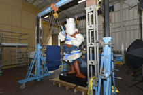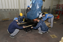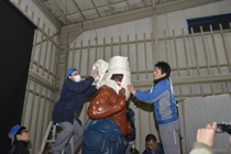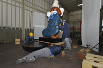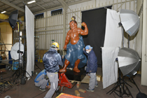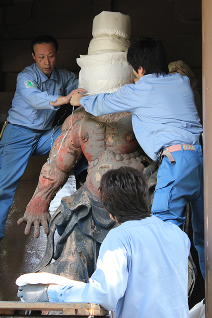 回転撮影後、回転台から降ろされる阿行像 |