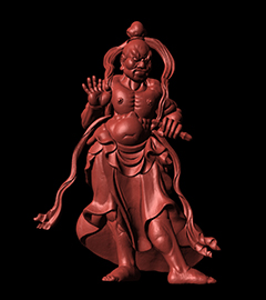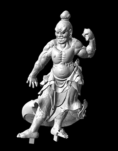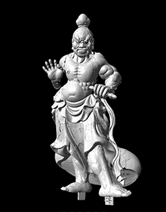 オプトトラッカーと非接触レーザースキャナとを組み合わた高精度ポータブル3次元計測装置で、横浜ではオプトトラッカーを御像の周りに配置しなおす代わりに360度PhotoVR撮影で使ったAZ Rotator120をそのまま回転台として使用した。スキャンしたデータは各部位ごとにパーツわけされレンダリングにまわされた。