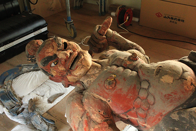 | 作業場に寝かされた吽行像 |