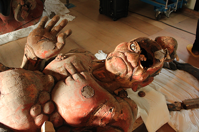 作業場に寝かされた阿行像 |