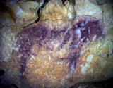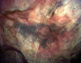 This large figure of a horse facing right is painted in violet. Its conservation is not ideal, as it is affected by calcite formations in the area of its neck and limbs. Its outline is quite diffuse.