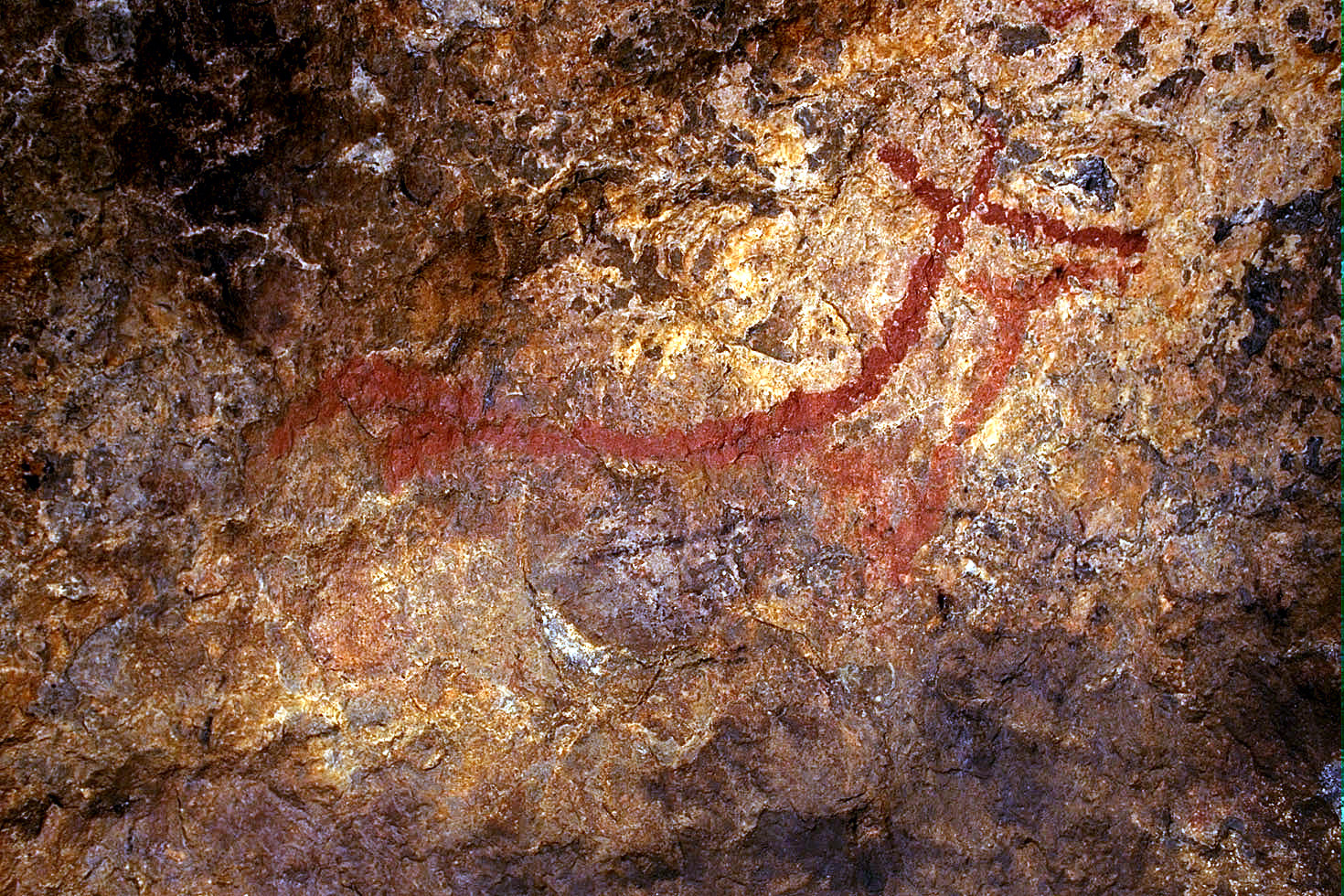Hinds painted with red dotted lines. Arenaza Cave, 1998