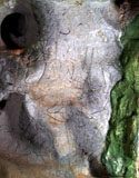 The bear that is engraved in the shelter near the entrance is sometimes identified as a cave bear because of the convex form of its skull.