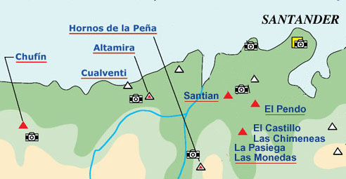 In the Upper Paleolithic, the large outer rock-shelter at El Castillo, 190m above sea level and facing east-northeast, was occupied much more often than the other caves which were then open. It was thus the main habitat in the hill and in all the immediate geographical area. These other smaller caves, despite being in the same intensely karstified limestone hill, seem to be mere satellites of the great habitat and decorative complex centered on El Castillo. They were occupied more occasionally as camps, for meetings and diverse activities, some of which would have involved the production of cave art.