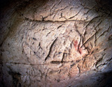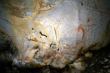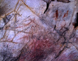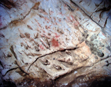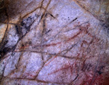The oldest motifs are several negative hand images (CA014_1), painted by spraying red pigment, and similar to those a few meters further inside the cave, in the "Gallery of the Hands". Hand images are not too common in the Cantabrian region, but can be seen in such caves as Altamira, Fuente del Salin and La Garma.