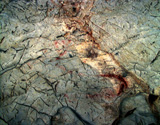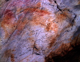 Superimposed on the hands, a second phase of painting depicts several animals and signs in red. Two small figures of hinds (CA023_1 and CA021_1) and a circular sign (CA024_1) are found in the center of the panel. Equally, in the top right corner of the panel there are a large figure of a horse, a stagÕs head (CA019_1), and the head of a second horse (CA018_1). Beneath this last animal, a hind (CA017_1) and a large bison (CA015_1) are depicted.