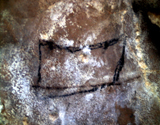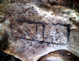 | Description: Part of a Cantabrian quadrilateral sign and non-figurative lines in black |