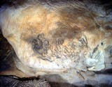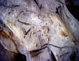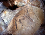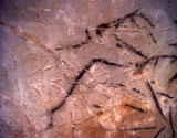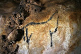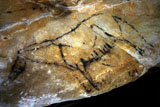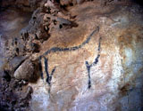 Further black lines on the right appear to be abstract signs. However, some of the lines seem to form simple animal figures too, especially those in the neck of the horse, where the belly and rear-quarters of a smaller animal can be identified.