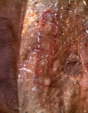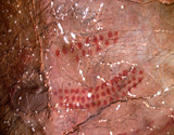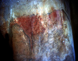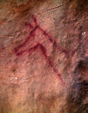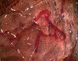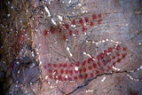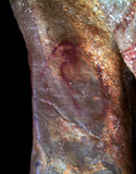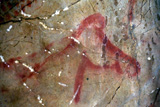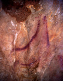 | Description: Red sign and engraved hind in the alcove in the left wall |