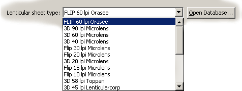 Перед началом работы нужно выбрать тип линзового растра, который вы хотите использовать. Начальная база данных содержит линзовые растры, которые удалось найти в интернете. Впоследствии вы можете редактировать базу данных, добавлять новые растры, удалять старые. Для редактирования базы данных нажмите на кнопку Open Database..., появится диалог Lenticular Sheets Database: