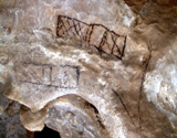 | Description: Part of a Cantabrian quadrilateral sign and non-figurative lines in black |