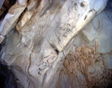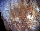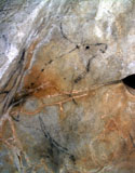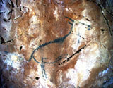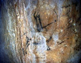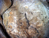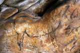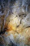 Further black lines on the right appear to be abstract signs. However, some of the lines seem to form simple animal figures too, especially those in the neck of the horse, where the belly and rear-quarters of a smaller animal can be identified.