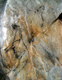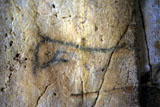 This figure of a horse, apparently headless, faces right and was outlined in black paint. It uses the natural shape of the rock, and as a result its cervical-dorsal is noticeably curved.
