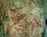 | Description: Painted horse and other engravings in the alcove in the left hand wall |