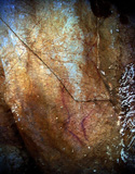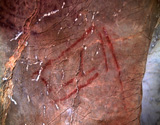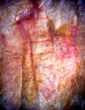 | Description: Red sign and engraved hind in the alcove in the left wall |