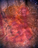 | Description: Abstract signs and other figures in red on the left wall of the vestibule |